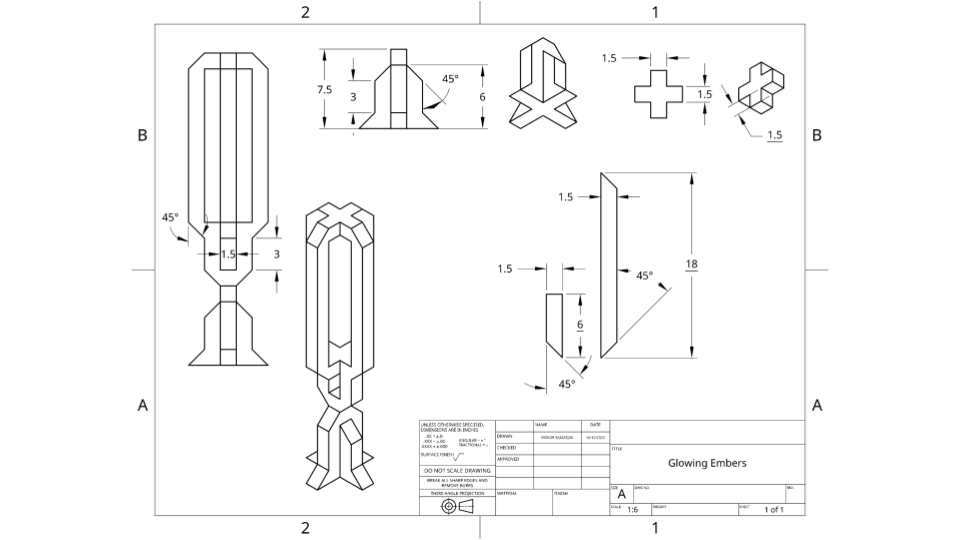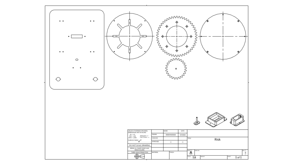 - Calculated & derived arc lengths/mechanism geometry to design a working shutter with 3 levels of rotating gears (see sketch image)